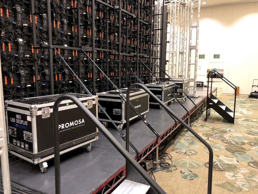 A video promo wall constructed at the Bayside Hotel in Vancouver